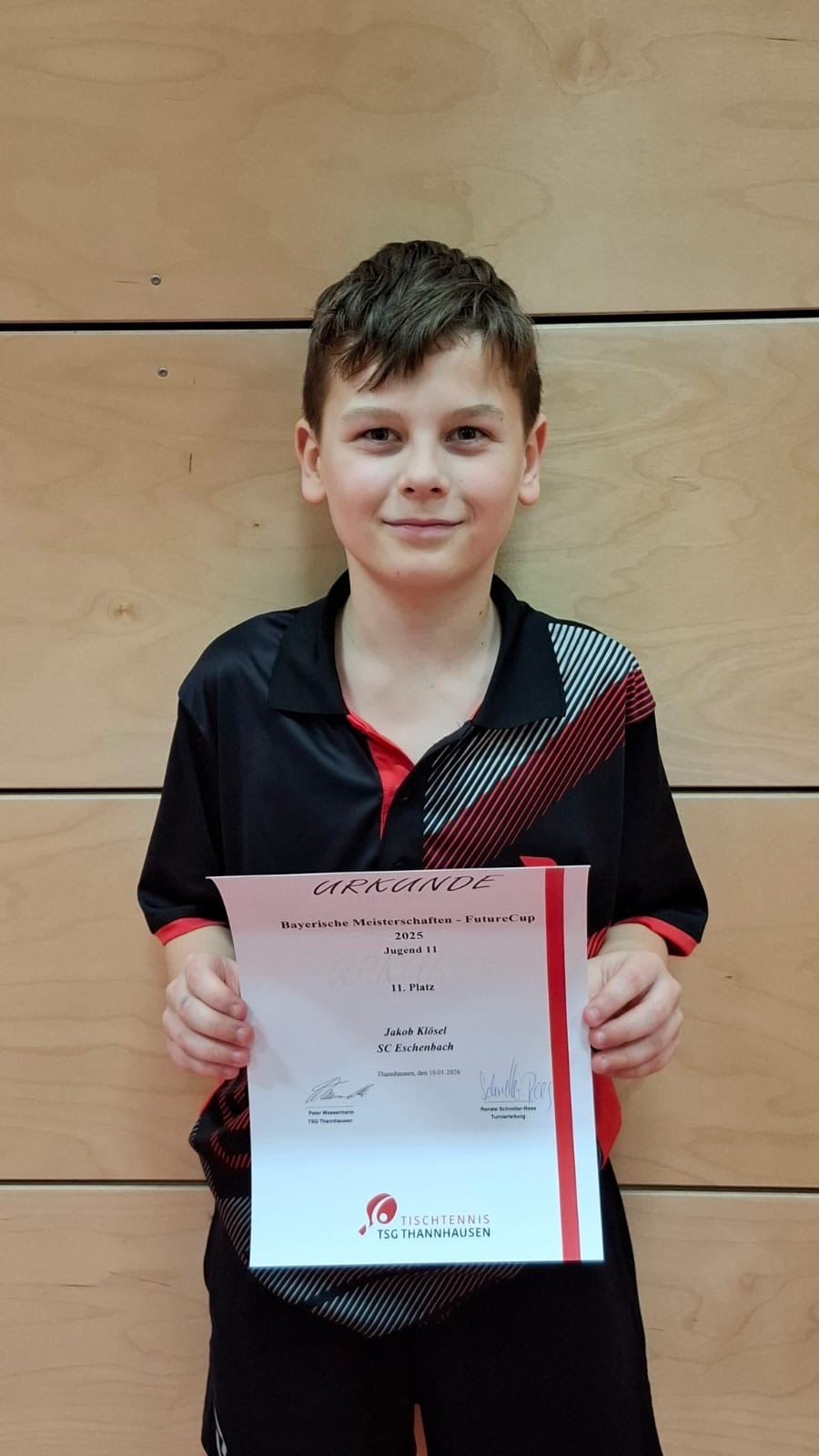 Die Vorrunde wurde in 5er Gruppen im Modus Jeder gegen Jeden ausgetragen. Hier konnte Jakob drei Spiele deutlich für sich entscheiden. Im letzten Vorrundenspiel musste er gegen den ersten Kaderspieler, Noah Weber vom ESV Neuaubing antreten. Nach gut 30 Minuten spannendem Schlagabtausch musste sich Jakob im 5. Satz mit 11:8 geschlagen geben.
