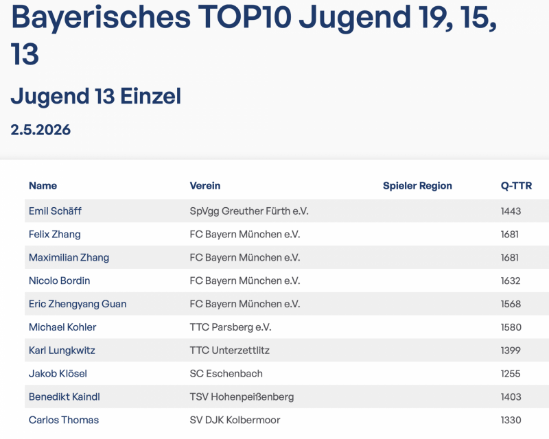 Dort trifft Jakob dann u. a. auf vier Spieler vom FC Bayern München, welche den BTTV bereits auf deutschlandebene erfolgreich vertreten.